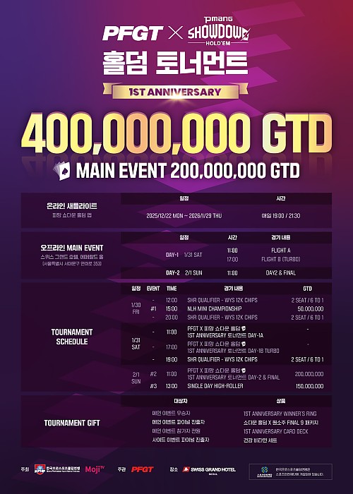 1/30 ~ 2/1 PFGT X PMANG Showdown Holdem 홀덤토너먼트 1st Anniversary 대회 일정 안내