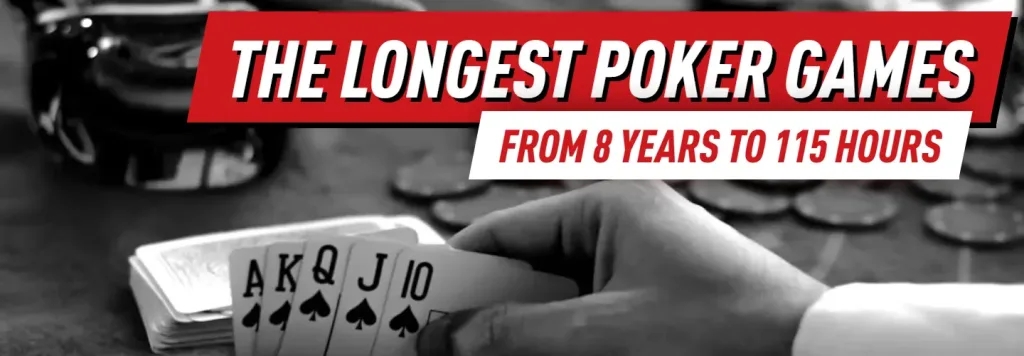 가장 긴 포커 게임의 ‘챔피언’으로 불리는 사례는 1880년대 애리조나주 툼스톤에 위치한 Bird Cage Theater에서 열렸다고 전해진다. 이 전설적인 게임은 무려 8년 5개월 3일 동안 중단 없이 이어졌다고 알려져 있다.