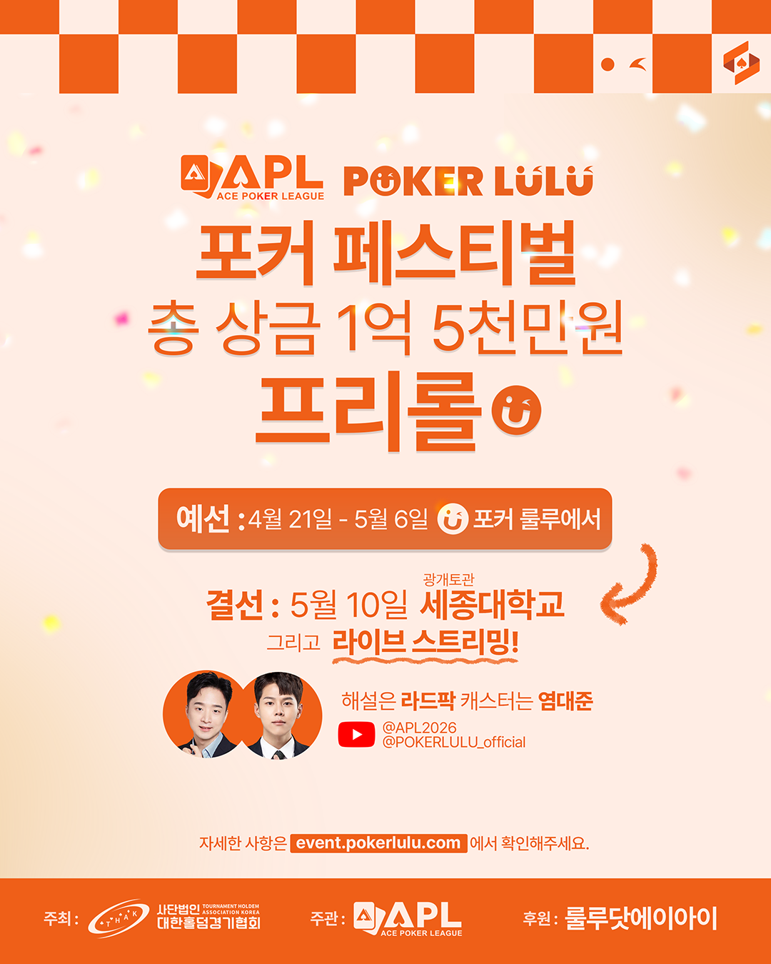 APL과 POKER LULU가 함께하는 포커페스티벌! 총 상금 1억 5천만원 프리롤 개최!