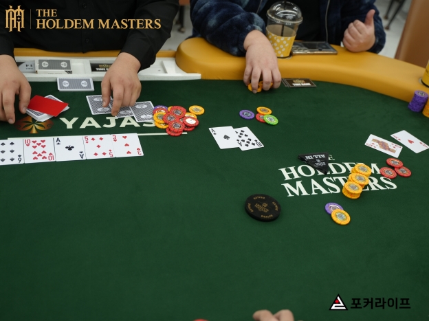 약 70,000칩을 들고 있는 LJ 플레이어가 4,000으로 레이즈하자, 50,000 가량의 칩을 보유한 CO 플레이어가 콜했다. 이어서, 150,000 정도의 칩을 가진 BB 플레이어가 16,000으로 3-Bet했다. LJ 플레이어와 CO 플레이어가 그의 3-Bet에 콜하면서 3-Way가 형성됐다.