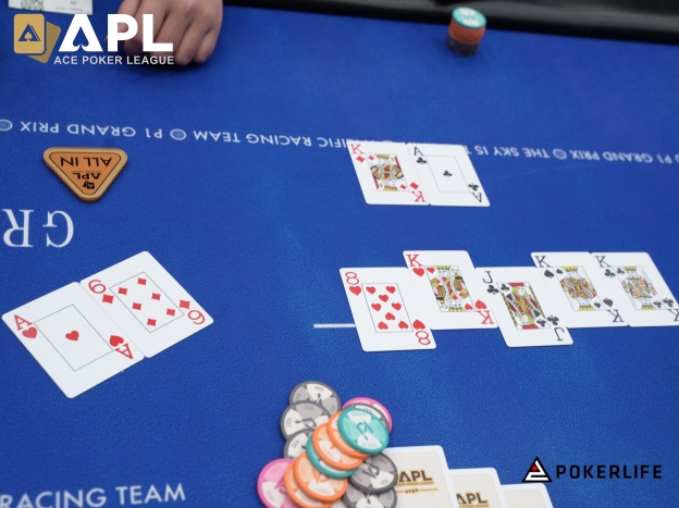 이미 Top Pair, Top Kicker로 월등히 앞서고 있던 BB 플레이어였으나, 턴과 리버에 King 카드가 떨어지면서 4 of a Kind, Kings로 승리를 굳혔다.