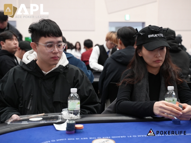 SB에서 약 35,000칩을 보유한 Huang Teng I 플레이어가 콜하자, BB에서 50,000 정도의 칩을 가진 나아영(나오미) 플레이어가 체크해 핫존 포지션에서 헤즈업이 형성됐다.