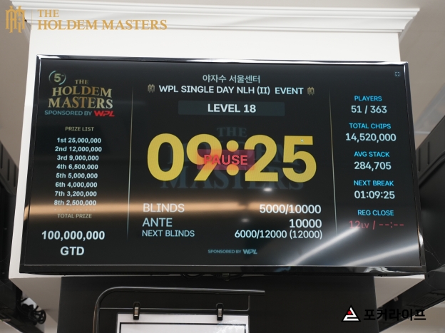 Single Day NLH Ⅱ 이벤트에 51명의 플레이어가 생존하게 되면서, 입상을 가릴 Hand For Hand가 진행됐다.