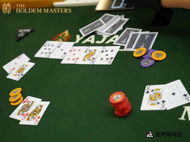 68,000칩을 보유한 MP 플레이어가 6,500으로 레이즈하자, CO 플레이어가 27,000칩을 all-in했다. 그러자, 약 110,000칩을 들고 있는 SB 플레이어가 콜하자, MP 플레이어도 곧바로 all-in을 선언했다. SB 플레이어는 콜했고, 세 플레이어의 쇼다운이 진행됐다.