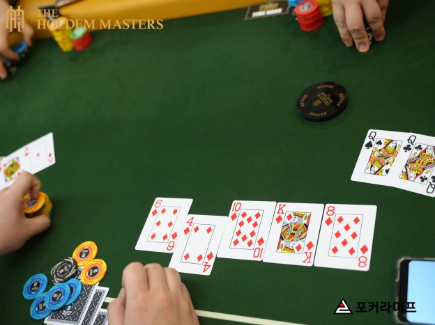 플랍까지 Pocket Queens가 리드하고 있었으나, 턴에 한 장의 다이아몬드 카드가 떨어지면서 스택을 커버한 LJ 플레이어가 승리했다.