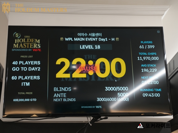 또한, 다른 테이블에서 한 명의 탈락자가 발생했다. The Holdem Masters 규정에 따라 스택이 가장 적은 플레이어가 버블을 면치 못하게 됐으며, 스택이 더 많았던 두 명의 플레이어는 40만원의 상금을 차지하는 데는 성공했다.