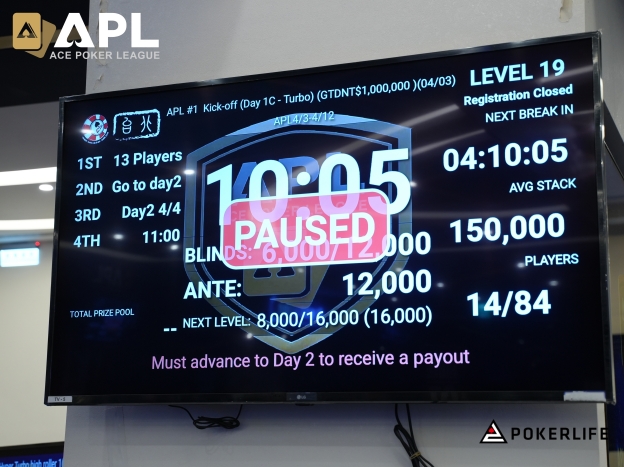 이로써, Day1C에 지금까지 생존한 13명의 플레이어가 Day2에 진출했다. Kick Off는 총 444엔트리가 기록됐으며, Day2는 67명의 플레이어가 진출했다. Day2 Seat Draw는 APL 공식 홈페이지를 통해 공개될 예정이다.