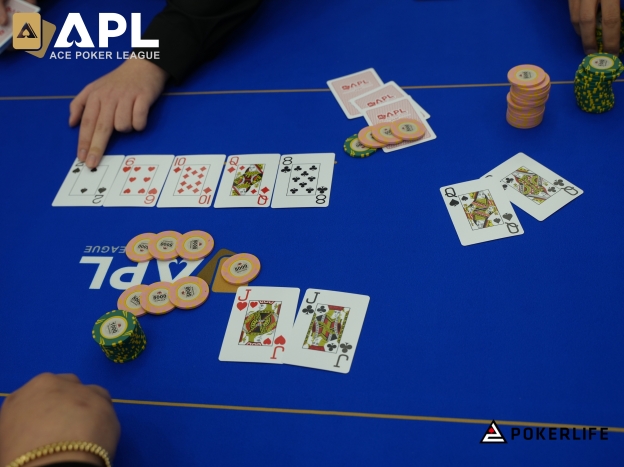 SB에서 200,000 정도의 칩을 가진 한국의 오준석 플레이어가 35,000으로 레이즈하자, BB에서 400,000 가량의 칩을 든 홍콩의 Wong Tin Lam 플레이어가 100,000으로 3-Bet했다. 오준석 플레이어는 곧바로 all-in을 선언했고, Lam 플레이어는 콜했다.