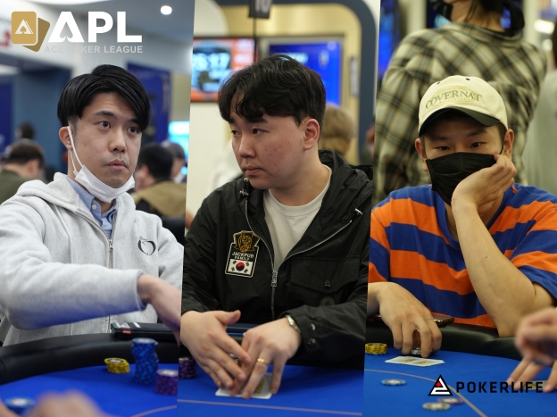 35,000 가량의 칩을 보유한 LJ 플레이어가 1,100으로 레이즈하자, CO에서 60,000 정도의 칩을 가진 김시웅 플레이어가 콜했다. 그러자, BB에서 20,000 가까이의 칩을 든 김수범 플레이어가 3,100으로 3-Bet했고, LJ 플레이어와 김시웅 플레이어가 콜하면서 3-Way가 형성됐다.