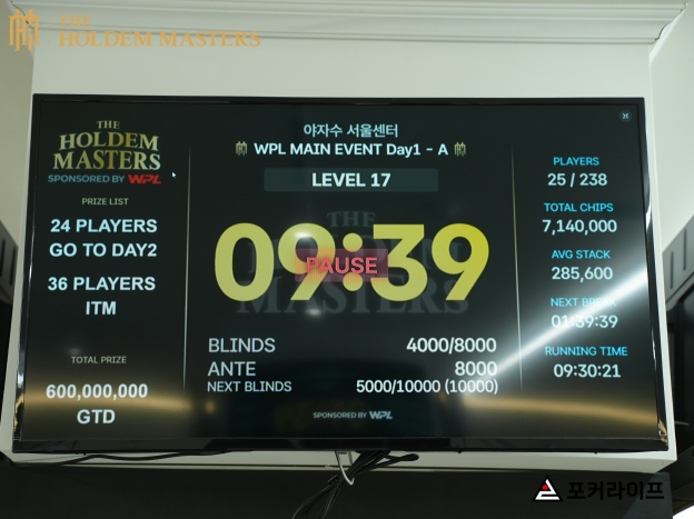 Main Event Day1A에 25명의 플레이어가 남게 되면서 Hand For Hand를 준비하는 과정에서 다른 테이블에서 탈락자가 발생했다.